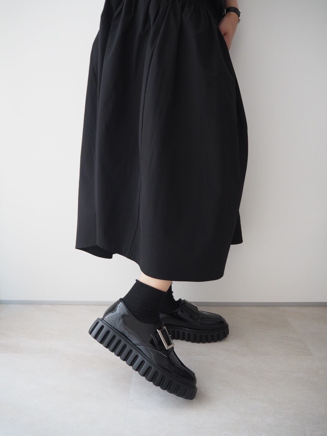ありそうでなかった厚底と、洗練されたシルエットはエレガントな印象に。