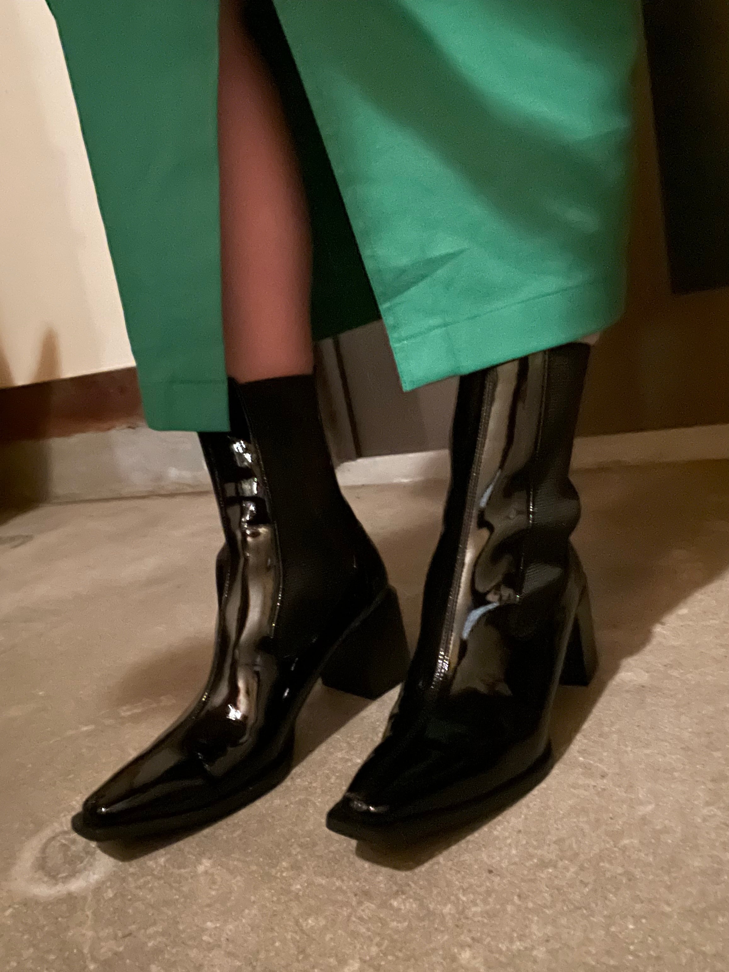底のスクエアとタグとサイドゴアが綺麗なシルエットにマッチ。