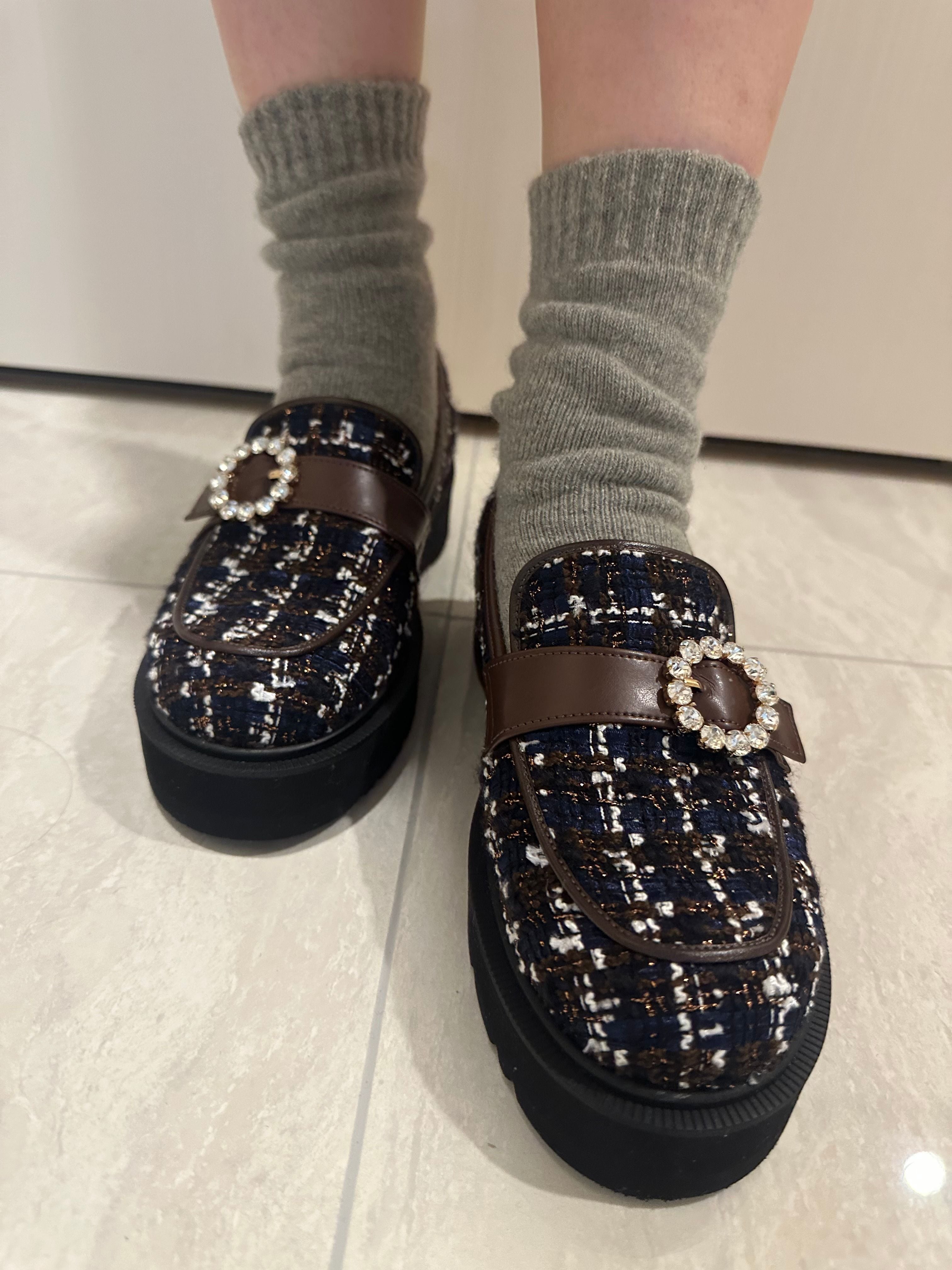 ツイードビジューローファー (2715N)